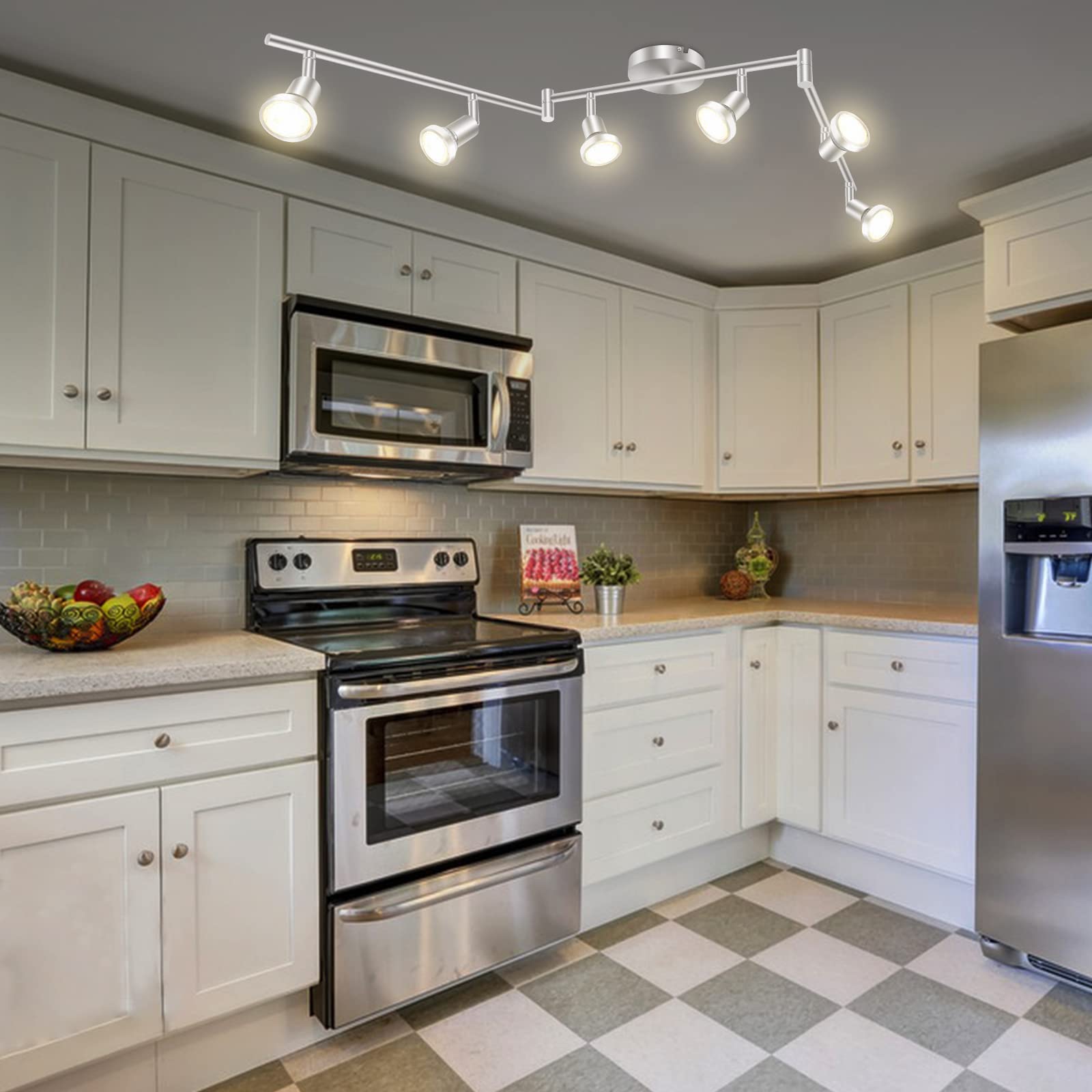 LED Ceiling Light 6 Way Rotatable Spot Lights for Ceiling,Flexible Ceiling Lights for Bedroom,Living Room,Nickel with Protectiv Bulb Trims(Gu10 Bulbs Not Included)