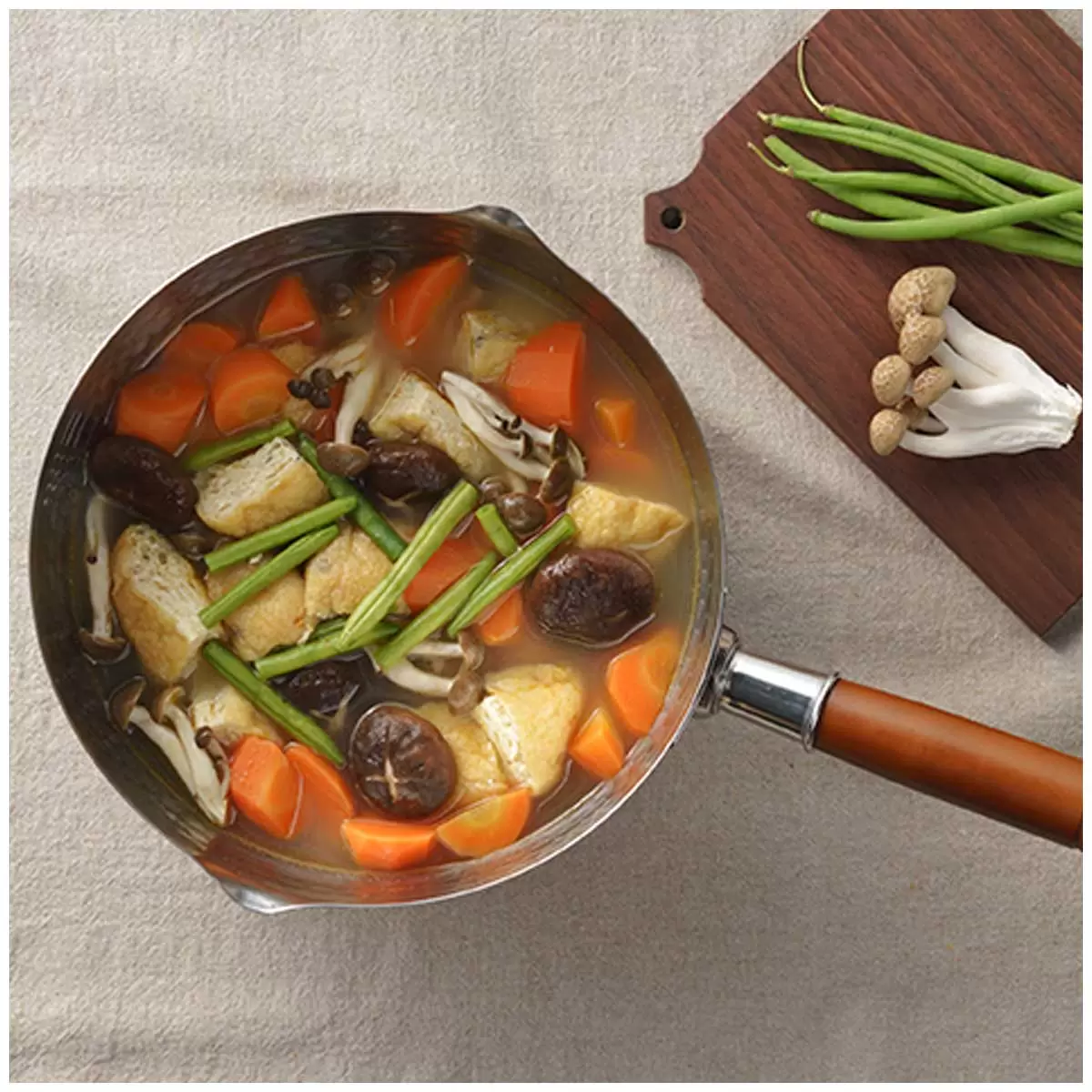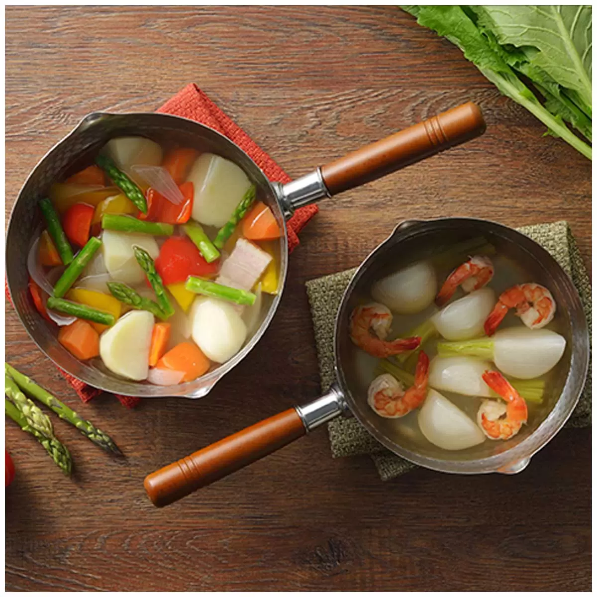 A traditional Japanese cookware, the Yukihira Saucepan features a stunning hammered finish and a comfortable wooden handle. Add a touch of elegance to your kitchen with the Yukihira Saucepan, the perfect blend of Japanese tradition and quality in every dish you create.