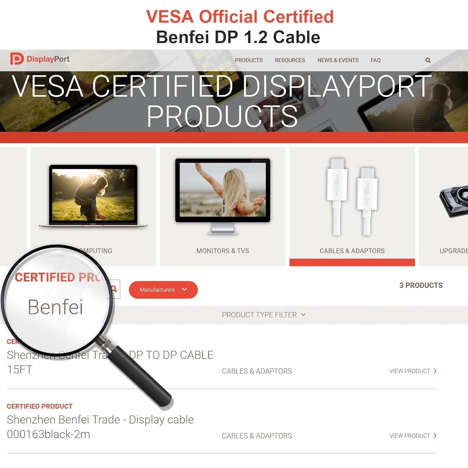 BENFEI 000279BK DP to DP Male to Male Cable 0.9M