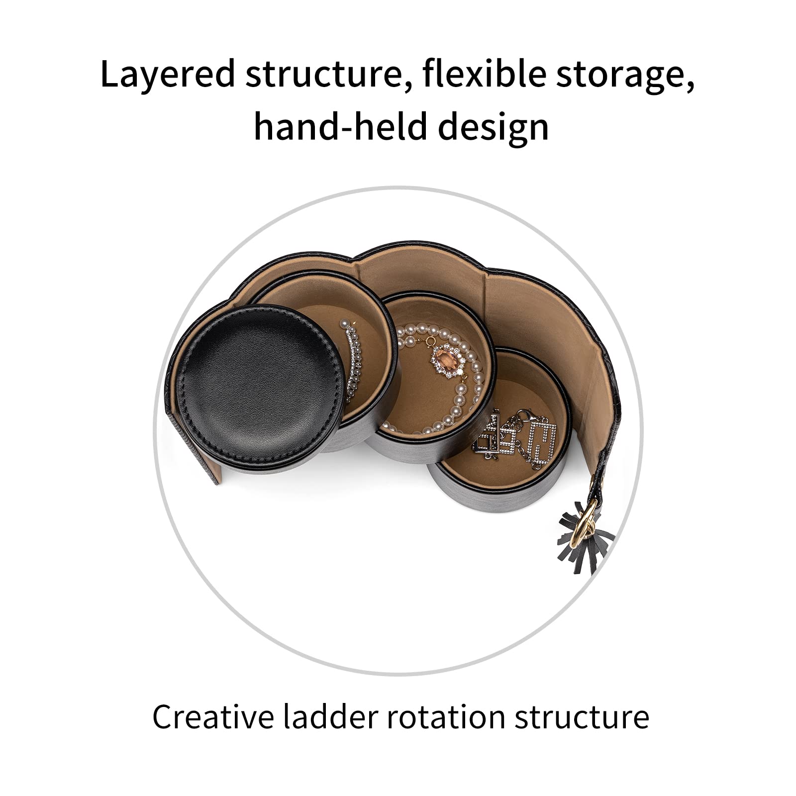 For Australian travelers and jewelry lovers seeking stylish, organized storage, the Black Travel Jewelry Caseis a must-have. This 3-layer cylindrical organizer combines fashion and functionality, featuring a creative stepped rotating structure that unfolds to reveal three spacious compartments. Crafted from abrasion-resistant PU leather with a hard shell, it protects your jewelry from deformation, while the soft flocking interior gently cares for delicate pieces.