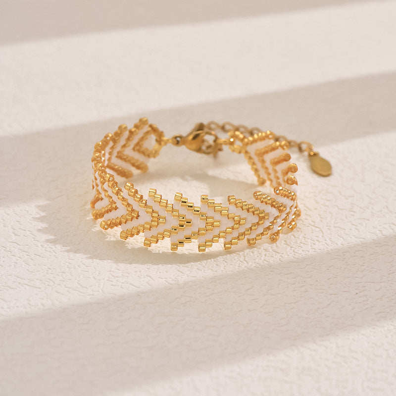 Gold-white Miyuki Beaded Bohemian Rainbow Arrow Handmade Stainless Steel Bracelet