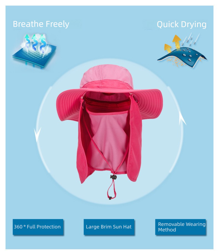 - Features: UV Protection, Breathable, Quick Dry, Detachable Face/Neck Flaps, Adjustable Chin Strap