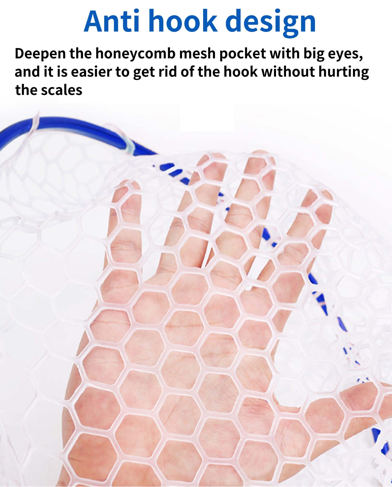 - Fish-Friendly Silicone Mesh: The soft, clear silicone net bag features a hexagonal, anti-hook design. This deeper pocket allows for easy hook removal without damaging fish scales or slime, promoting healthy catch and release. It's also quick-drying and odour-resistant.