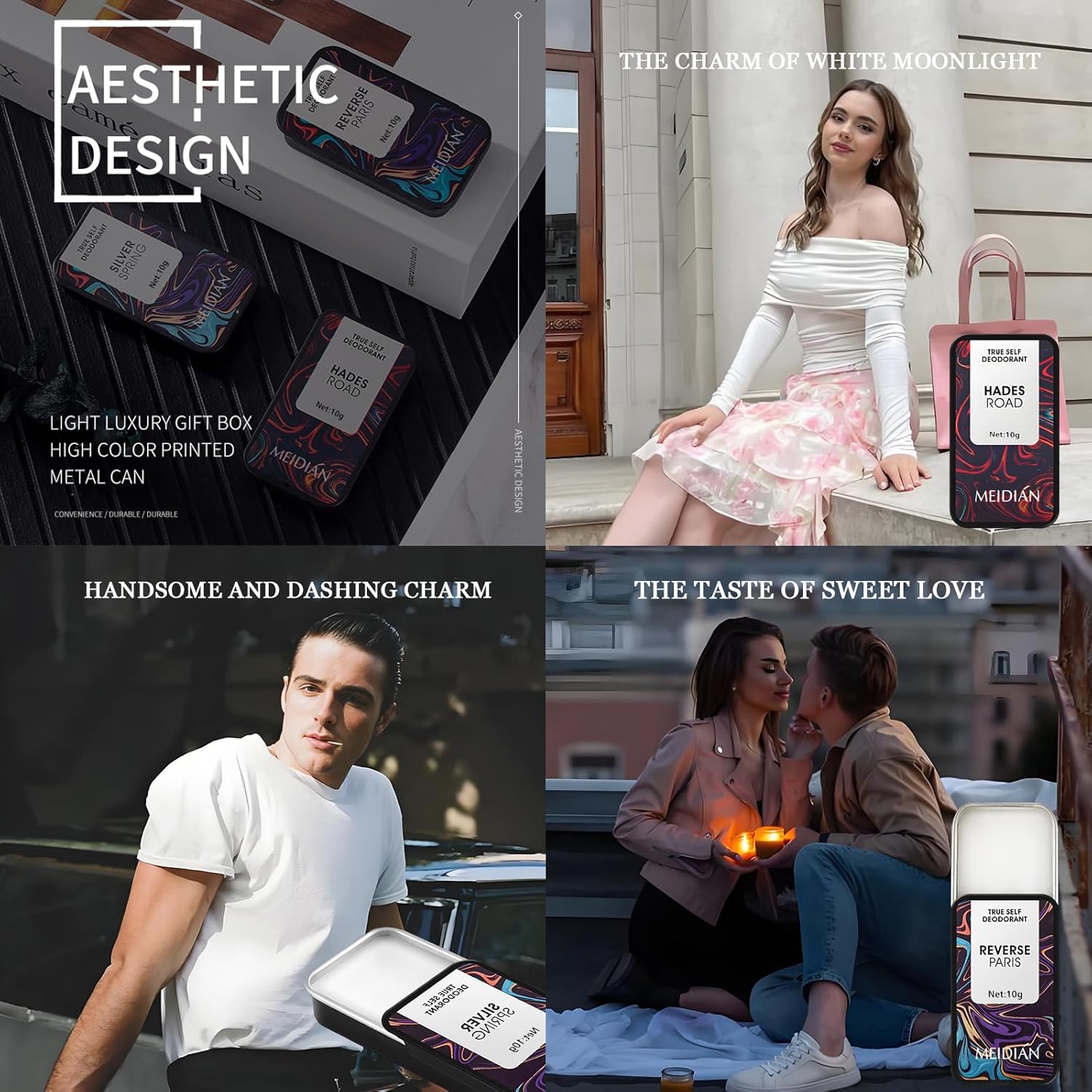 Reverse Paris blends romantic fruity and floral notes, evoking the sweetness of love. Silver Spring offers a neutral, refreshing blend of cold orange and woody scents, ideal for a clean, confident aura. Hades Road combines lavender and vanilla for a calm, literary charm. The solid formula ensures longer fragrance retention than traditional liquid perfumes, while the alcohol-free composition makes it suitable for sensitive skin and alcohol allergies.