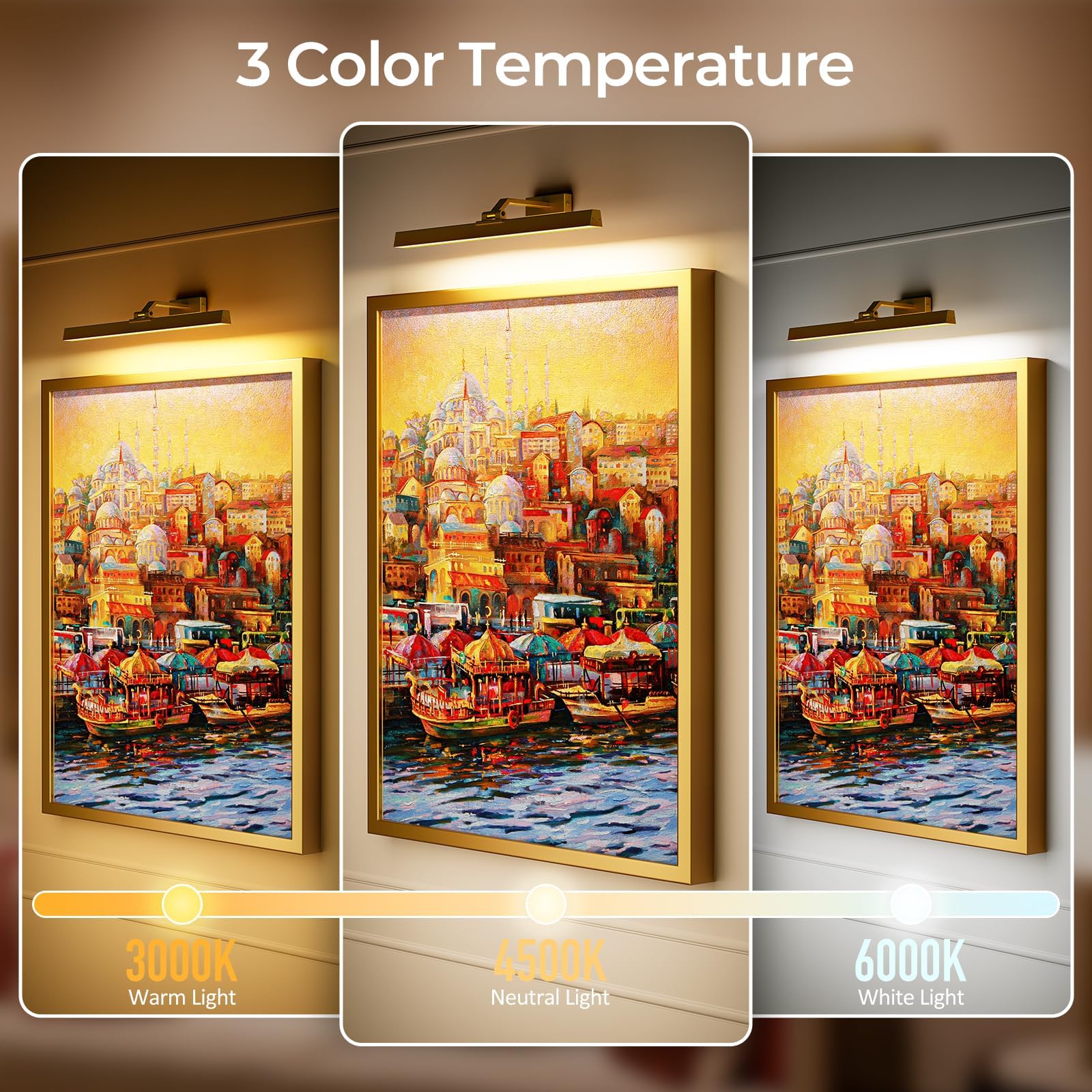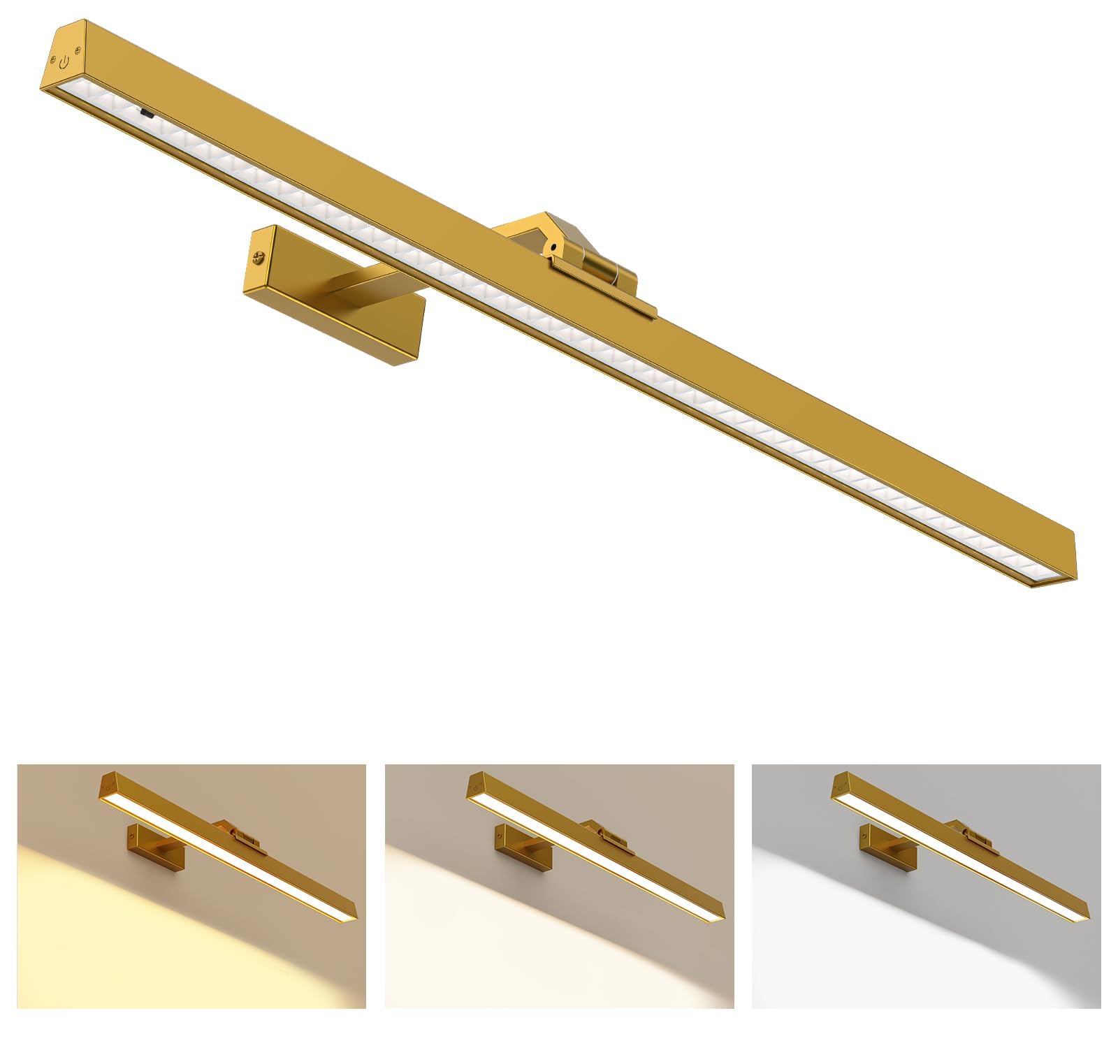 Wall Picture Light, 24in Battery-Powered Gallery Light for Artwork, CCT Dimmable Rechargeable Battery Wall Lamp with Remote Control for Living Room, Gallery, and Dartboard (Gold)